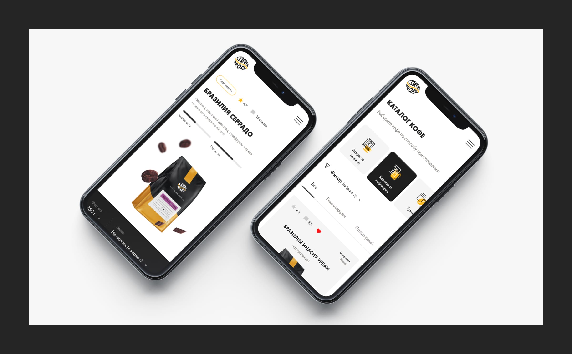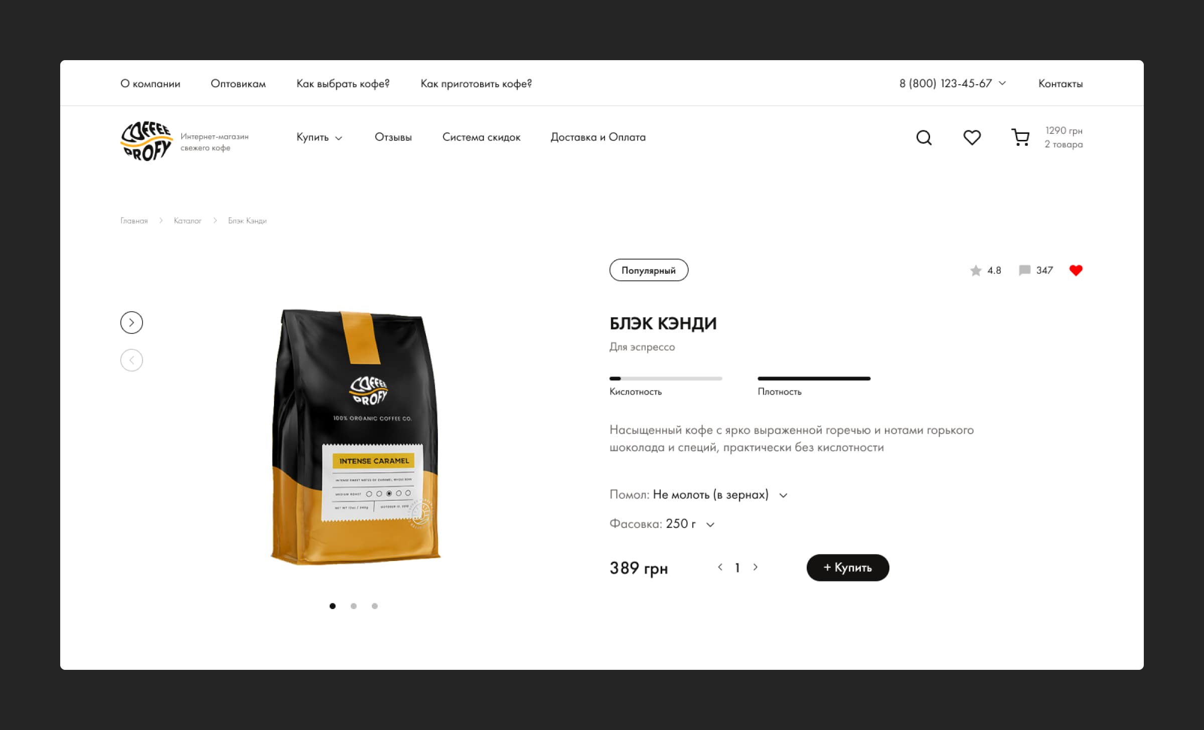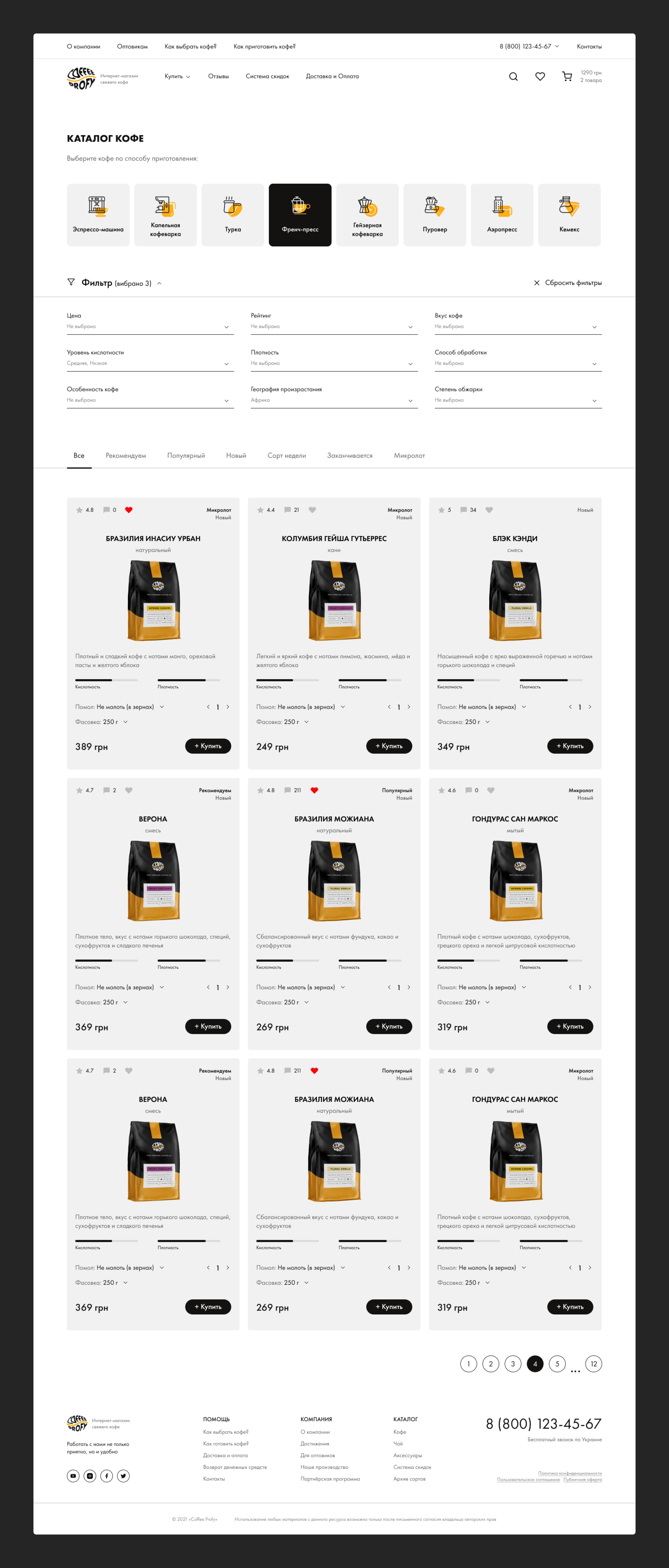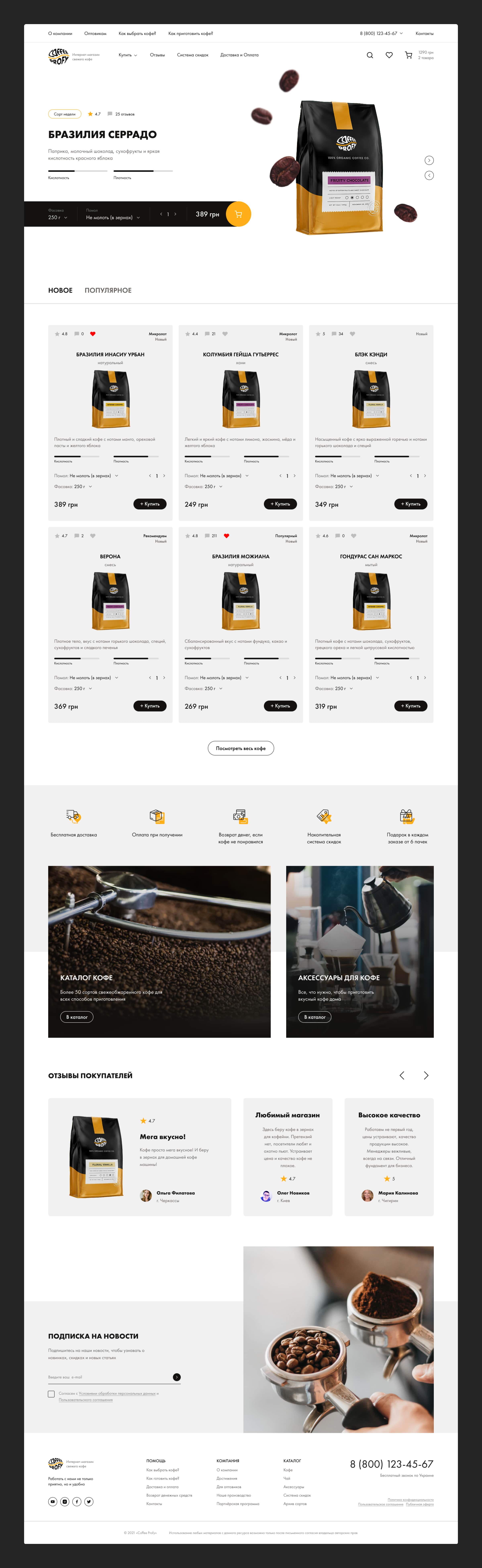 Create a stylish and modern design for an online coffee shop, as well as an adaptive design for the convenience of users.