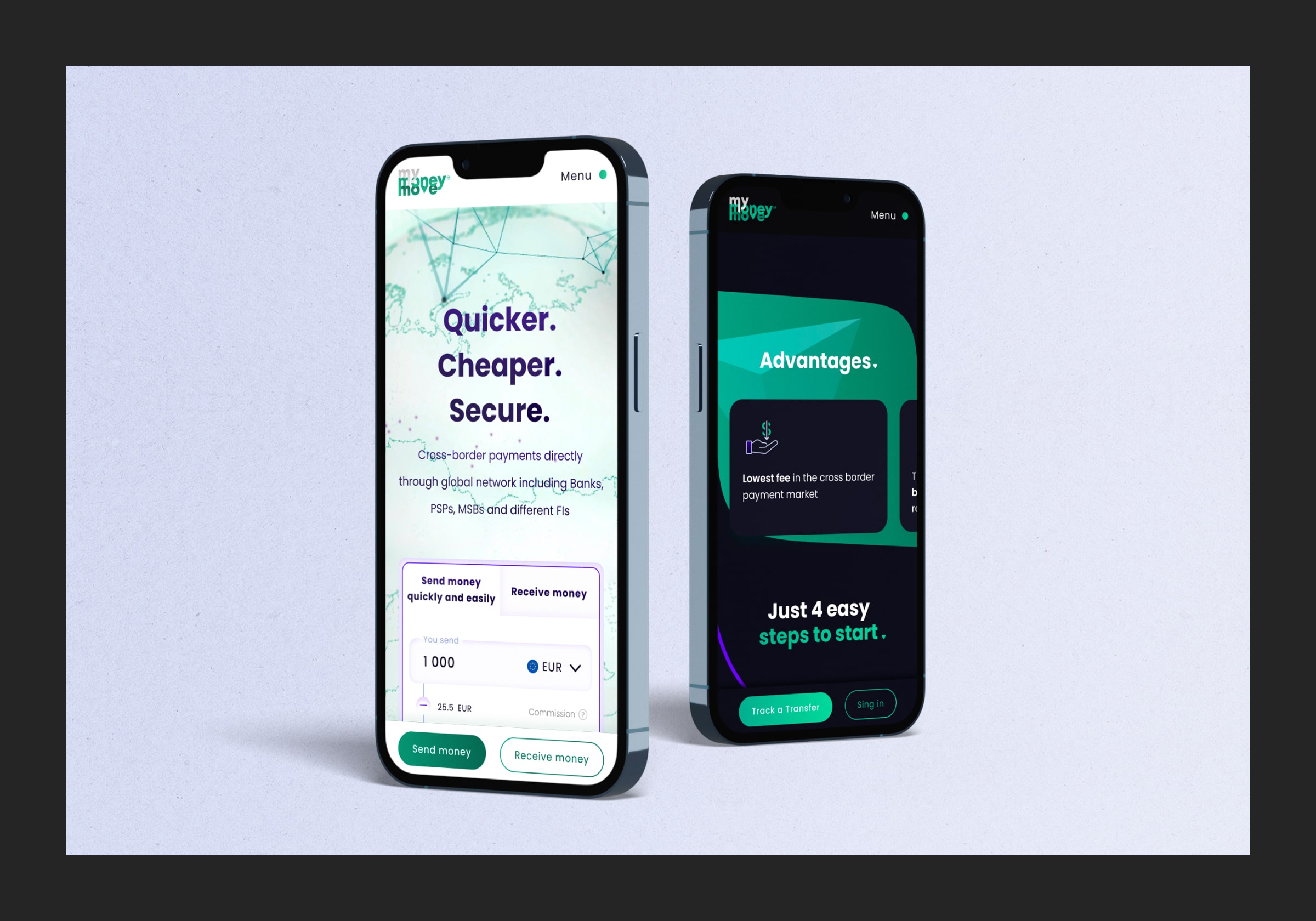 Creating a site design for the presentation of services, competitive advantages and work specifics of MyMoneyMove.